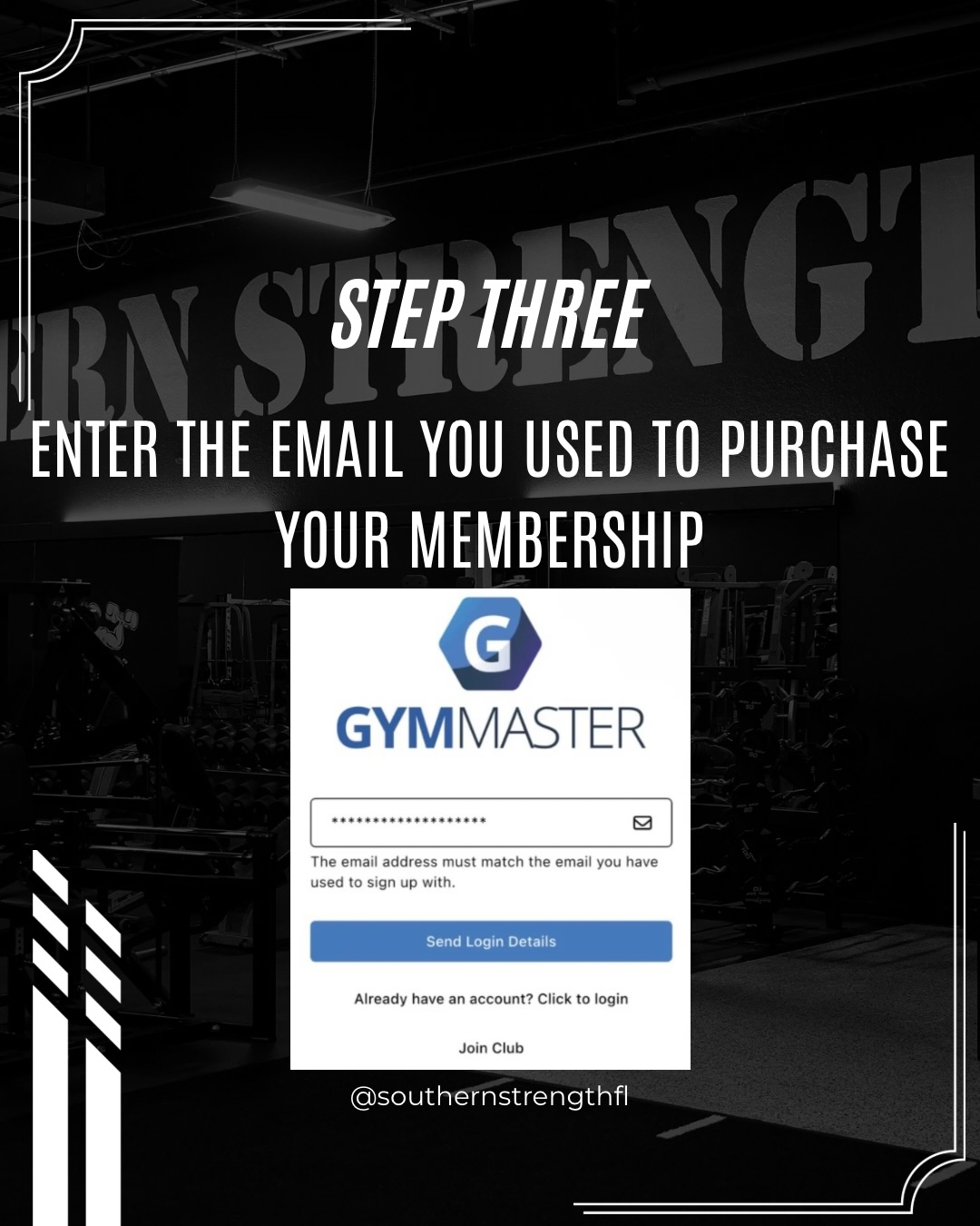 If you purchased your membership online, follow these simple steps to gain access to Southern Strength using the GymMaster app.
